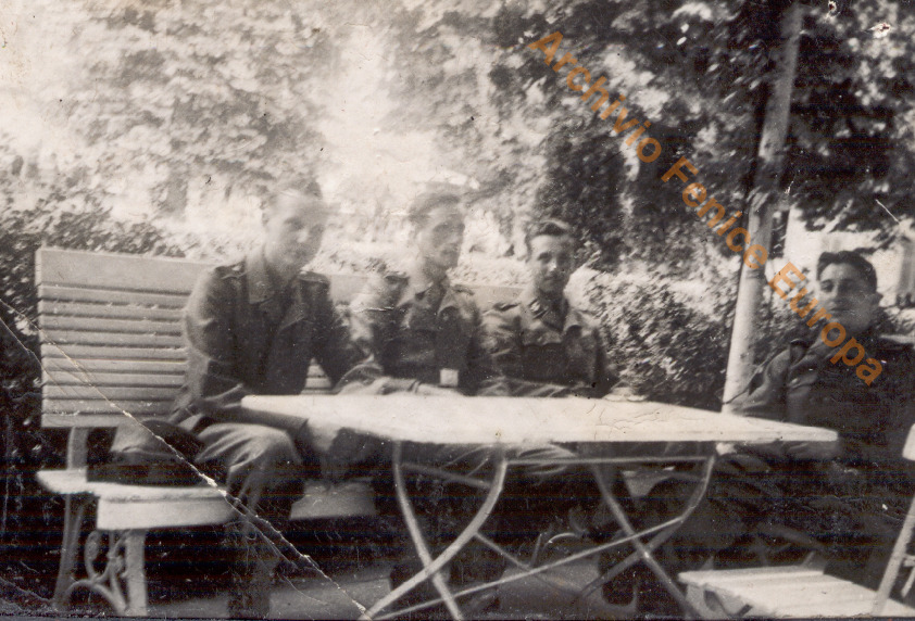 Gruppo di veterani ad una cena, data e luogo non noti. Sul retro della prima foto, Leon Degrelle ha annotato alcuni dei partecipanti. Tre pagine.