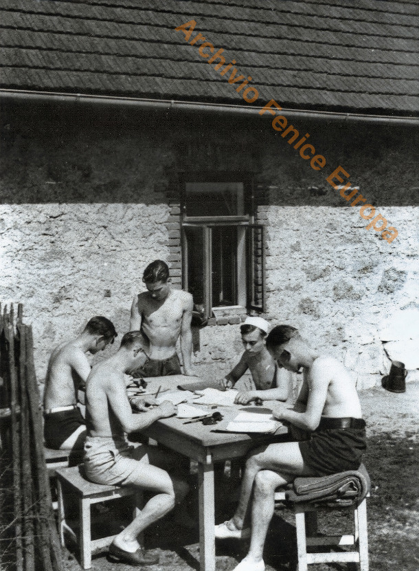 La curiosità di questo scatto è che la didascalia non è stata scritta sul retro della foto, ma sul retro di una cartolina. Due pagine.