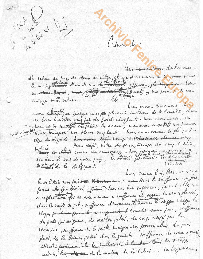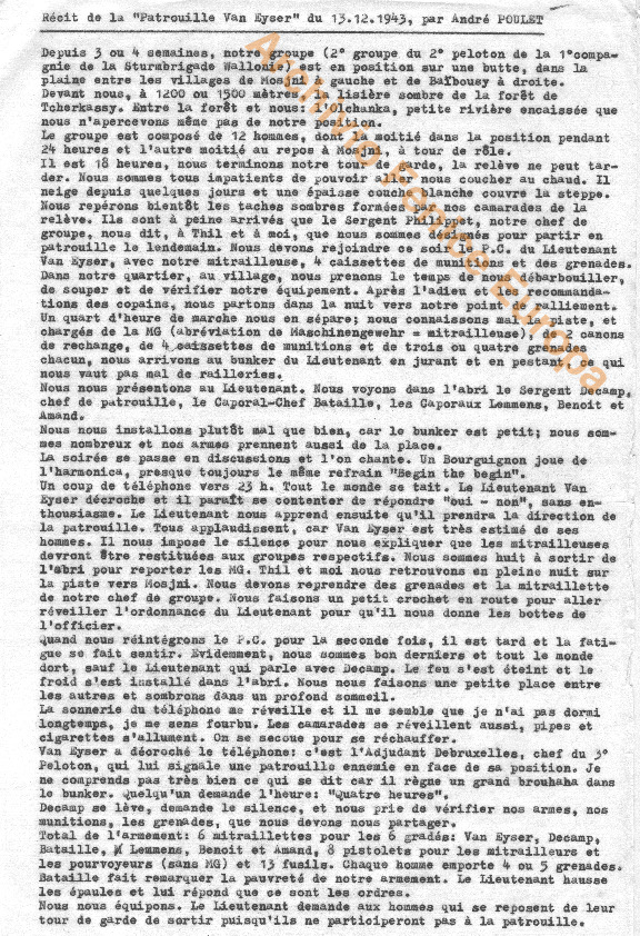 Un legionario della Vallonie, Andre Puolet, scrive i sui ricordi di pattuglia del 13 Dicembre 1942. Otto pagine
