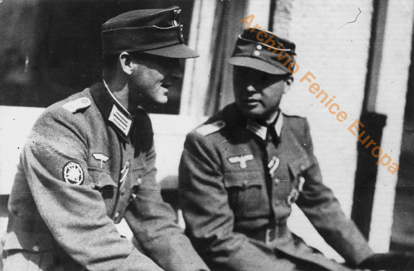 Leon Degrelle mostra a un ufficiale tedesco le foto dei militi della Wallonie sul Fronte dell'Est. Una pagina.