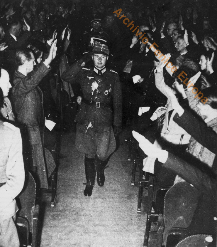 Leon Degrelle passa fra due ali di folla che lo salutano a braccio teso, una pagina