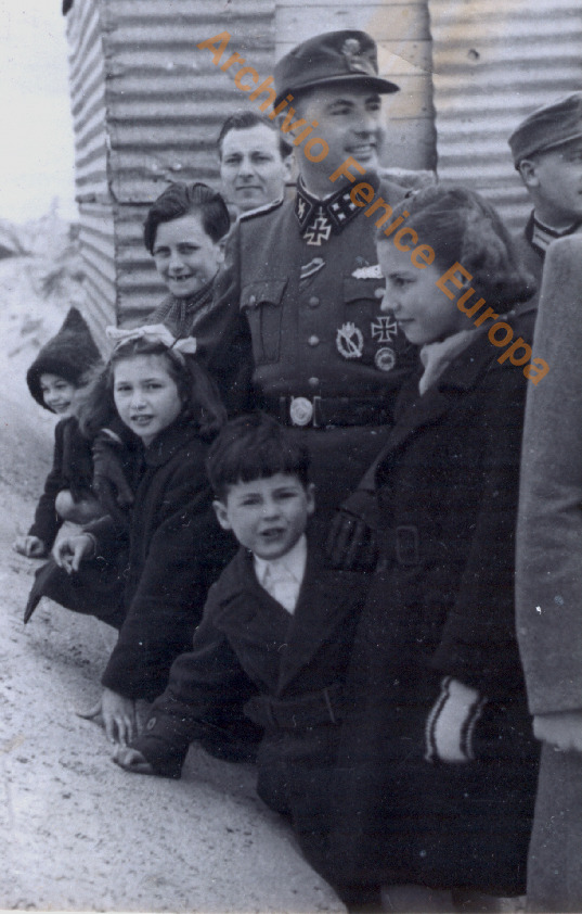 Leon Degrelle fra il popolo, foto scattata in occasione della sfilata dopo la battaglia di Čerkasy. Una pagina.