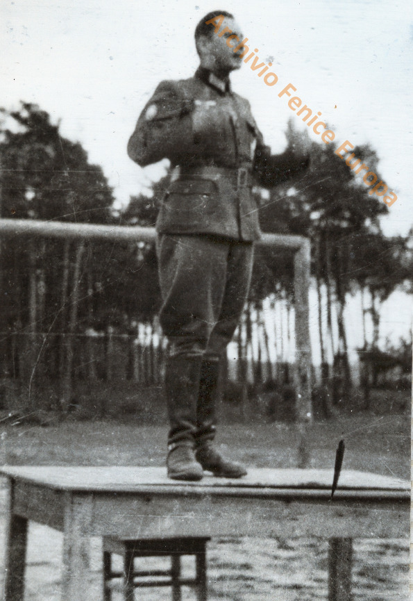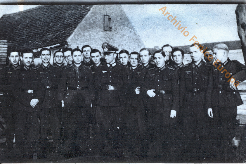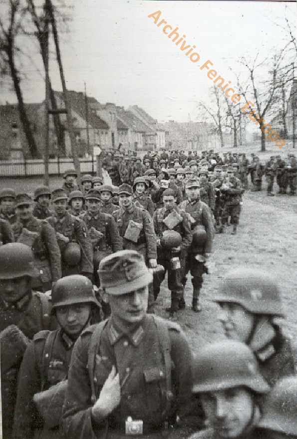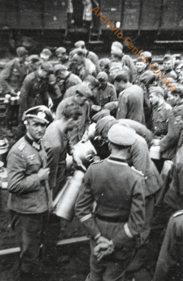 Militi della Wallonie si organizzano per salire sulla tradotta che li porterà al fronte. Due pagina