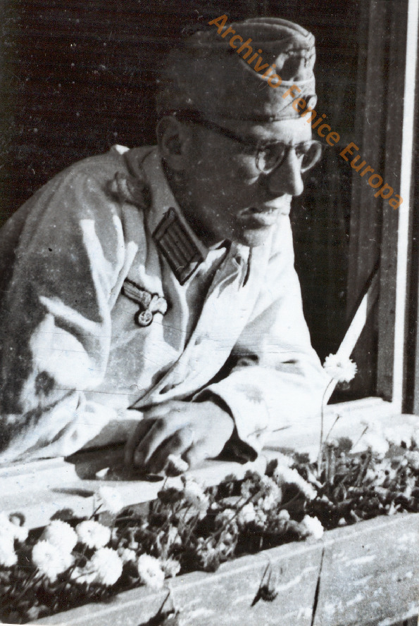 Ufficiale sconosciuto alla finestra, da notare i fiori, un momento di serenità. Una pagina