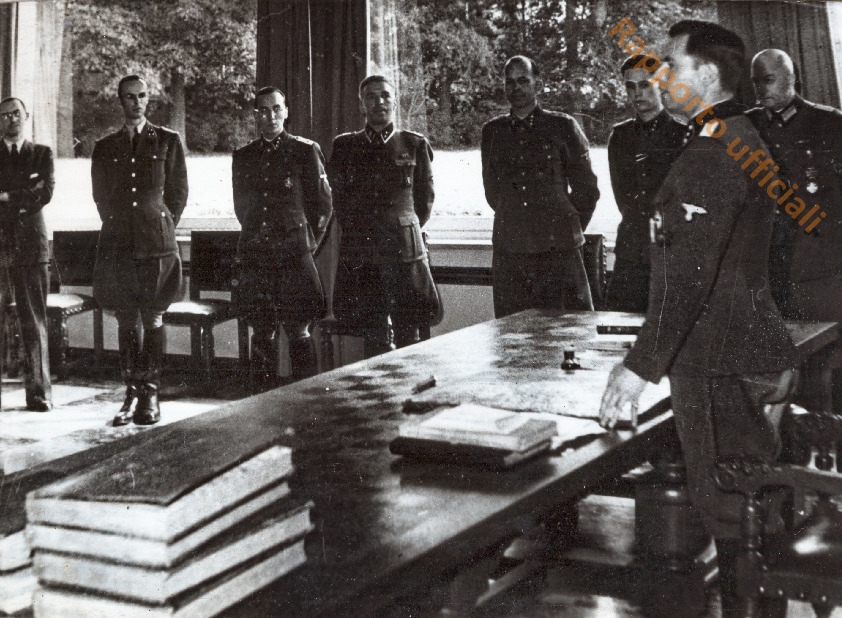 Il Generale Leon Degrelle tiene rapporto ufficiali. Una pagina