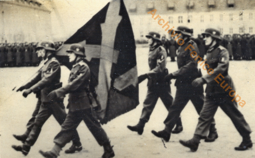 Il vessillo dei bastoni incrociati portato dal picchetto d'Onore. Una pagina.