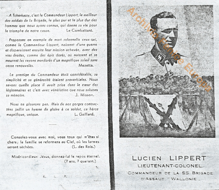 Ricordo di Lucien Lippert, caduto il 13 febbraio 1944 a Čerkasy. Articolo tratto da Pays Réel. Due pagine.