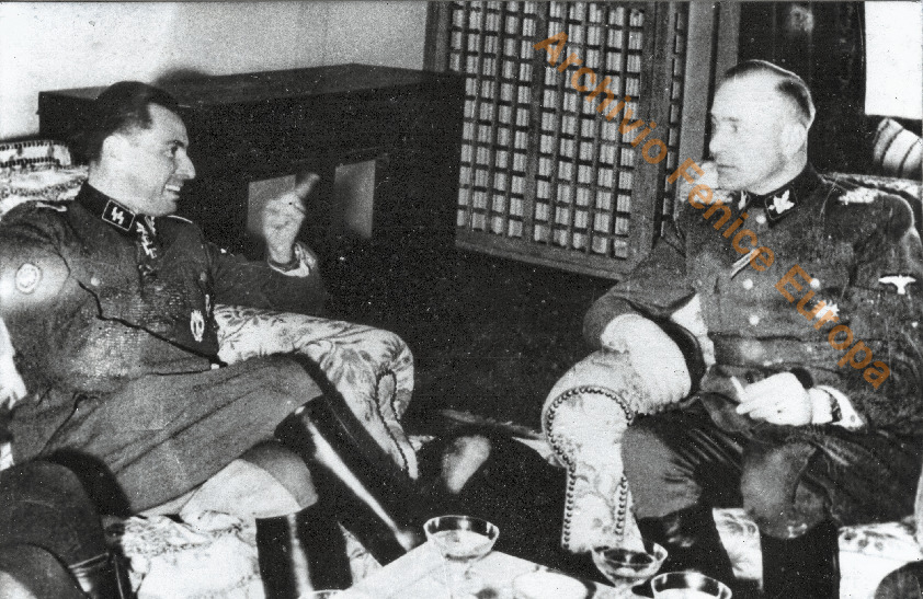 Leon Degrelle con un ufficiale tedesco, un aperitivo insieme. Una pagina.